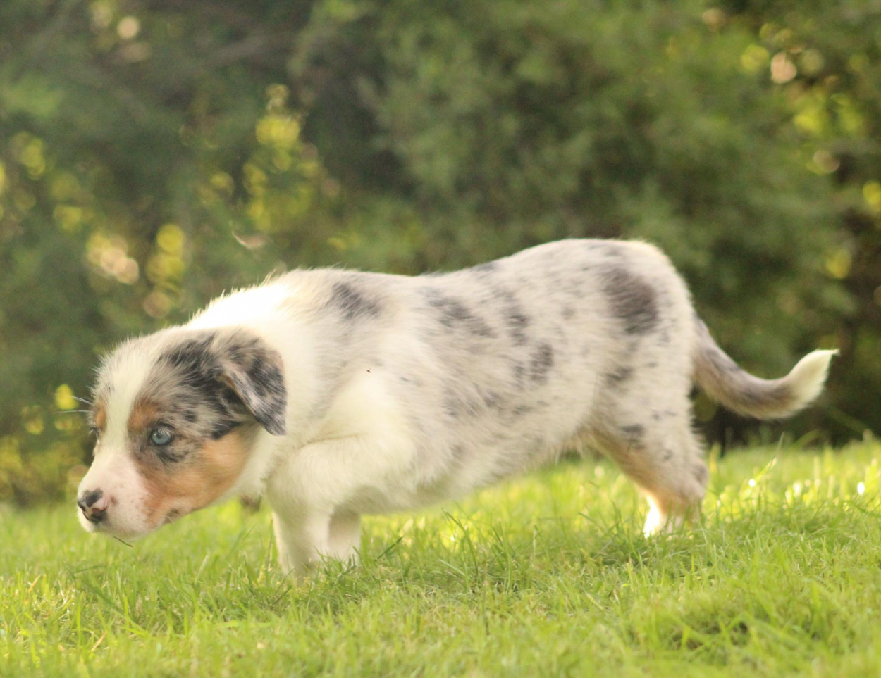 | Krāsa | Blue Merle Tricolour |